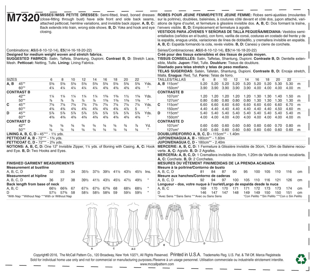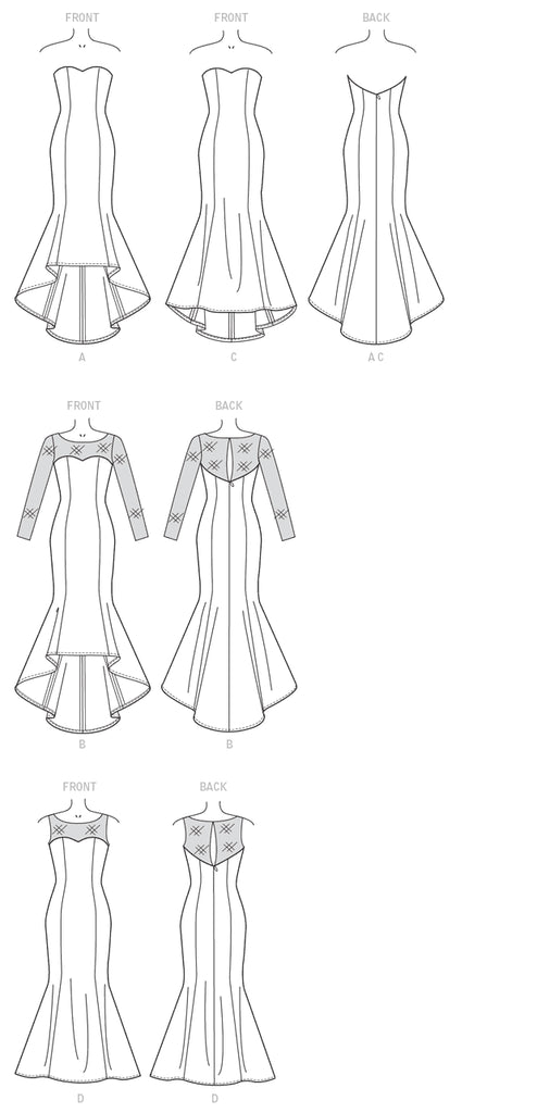 McCall's 7320 (M7320) Formal Dresses Sewing Pattern: Mermaid-Hem and High-Low Dresses